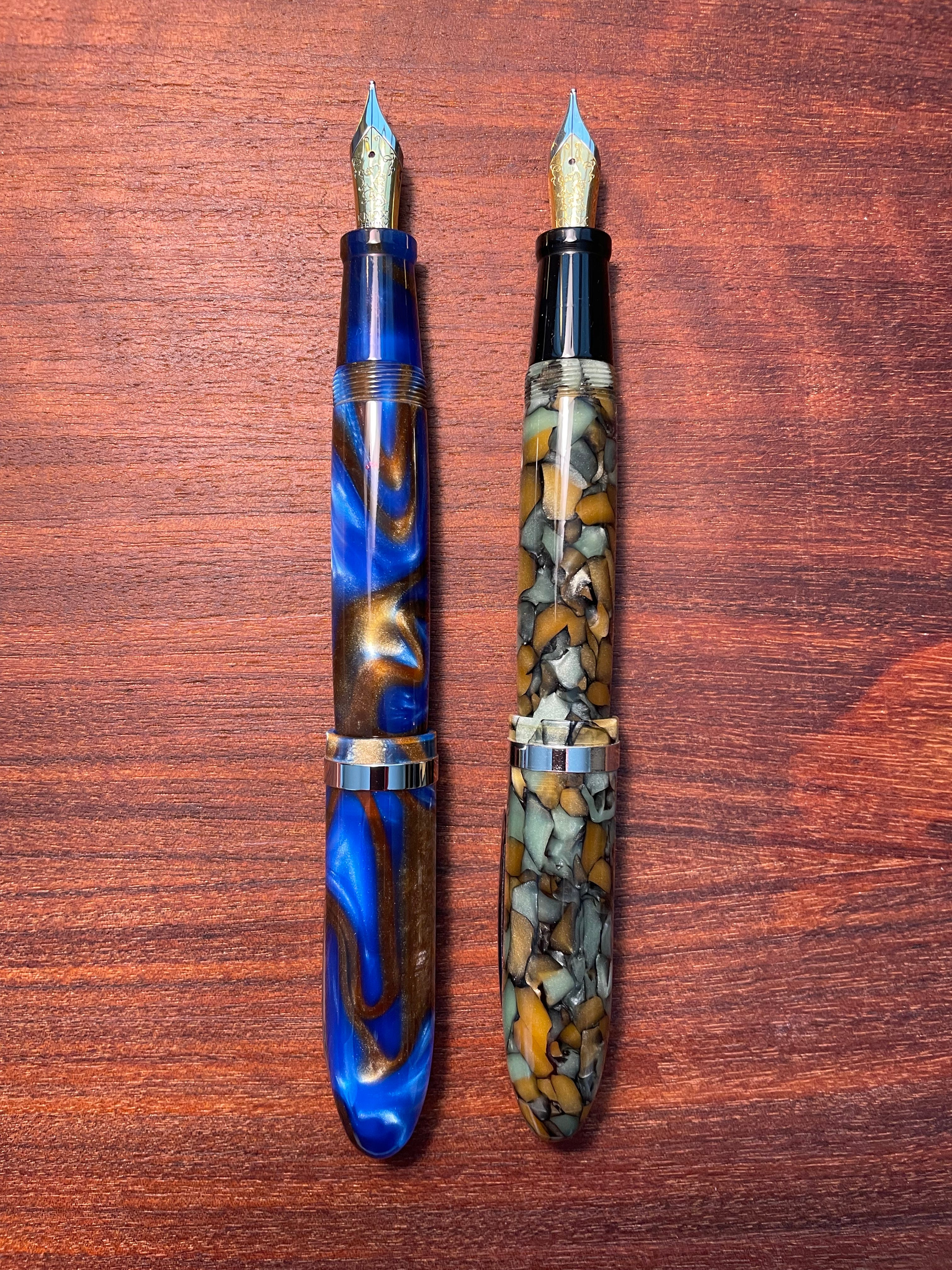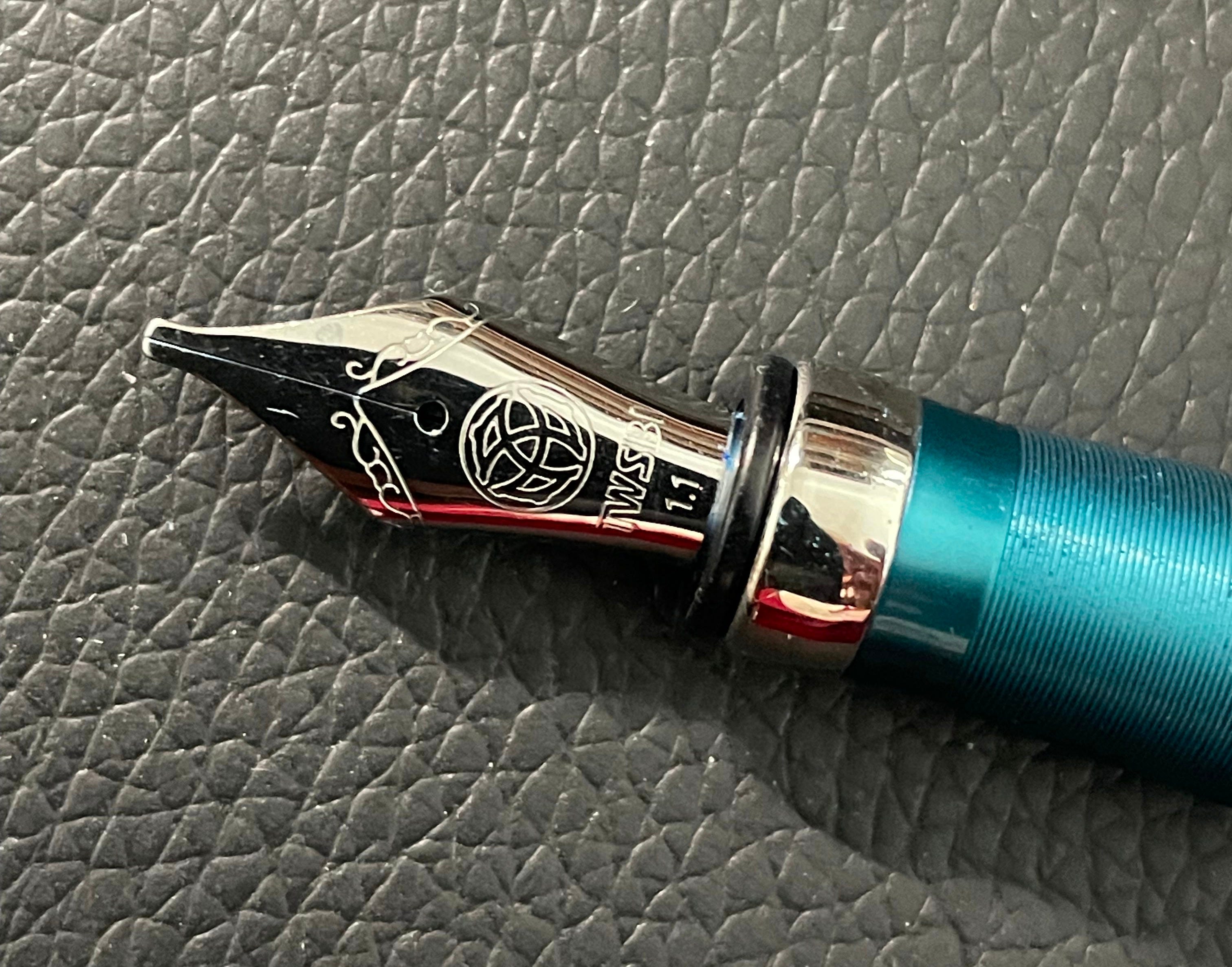 The nibs which are the most fun to write with come in sizes like the 1.1 stub. I have two TWSBI Diamond 580 ALR pens with 1.1 stub nibs and was generously gifted with a Hongdian C2 fitted with a Nemosene 1.1 stub by Andrew Wertheimer . Drew filled the converter with a stunning ink from The Wet Pen called Rainer Blue, and the generous line from the 1.1 stub nib shows off a gorgeous violet sheen on the brilliant sapphire. My “grail pen,” a Waterman Man 100 “Opera” pen, is fitted with an 18 karat gold 1.1 stub. It always delivers a smooth, wet line featuring an ink’s best properties. All these pens are among my favorites in terms of the writing experience they deliver.